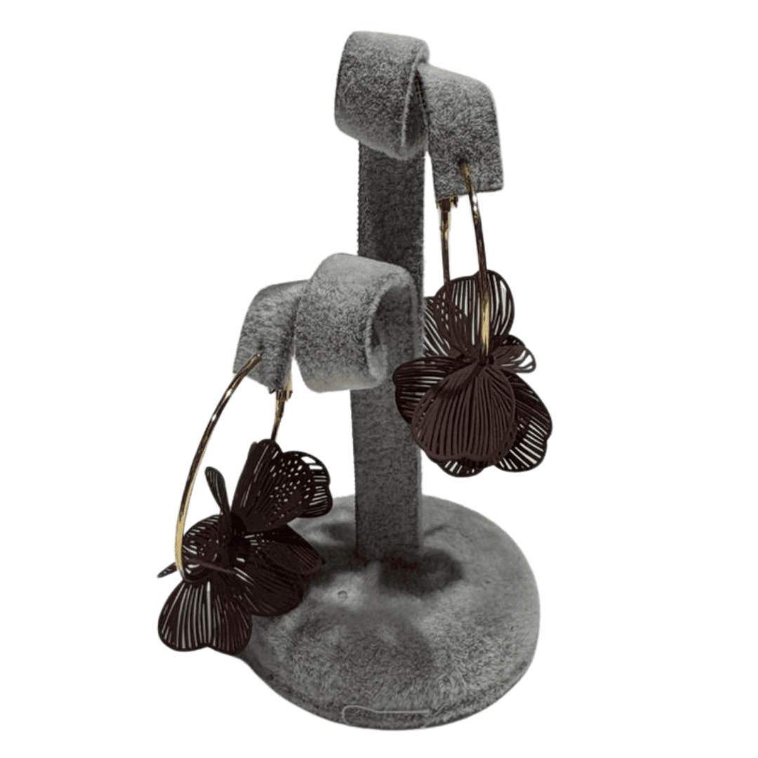 Elegant yet fun, brown shaded butterflies wrap around a simple gold hoop. Snap back closure.