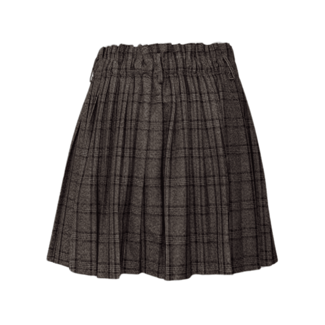 Classic brown tartan pattern on a pleated skirt. Fantastic for achieving a chic, classy look. Perfect to pair with a chunky knit this winter. Stretchy elasticated waist and belt loops provides comfort.