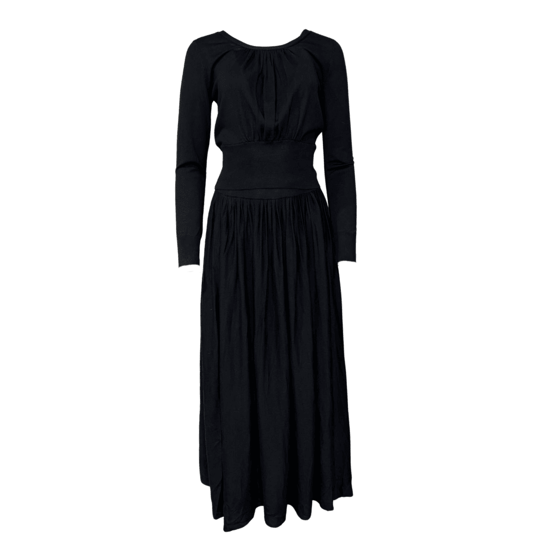 A super soft sweater paired with a midi pleated skirt. Long sleeved with a round neckline, with elasticated waist on the skirt. Fantastic stretch in this super soft fabric. Easy to wear together for a dressed up look this winter! Small pleat details create a nice feminine silhouette.