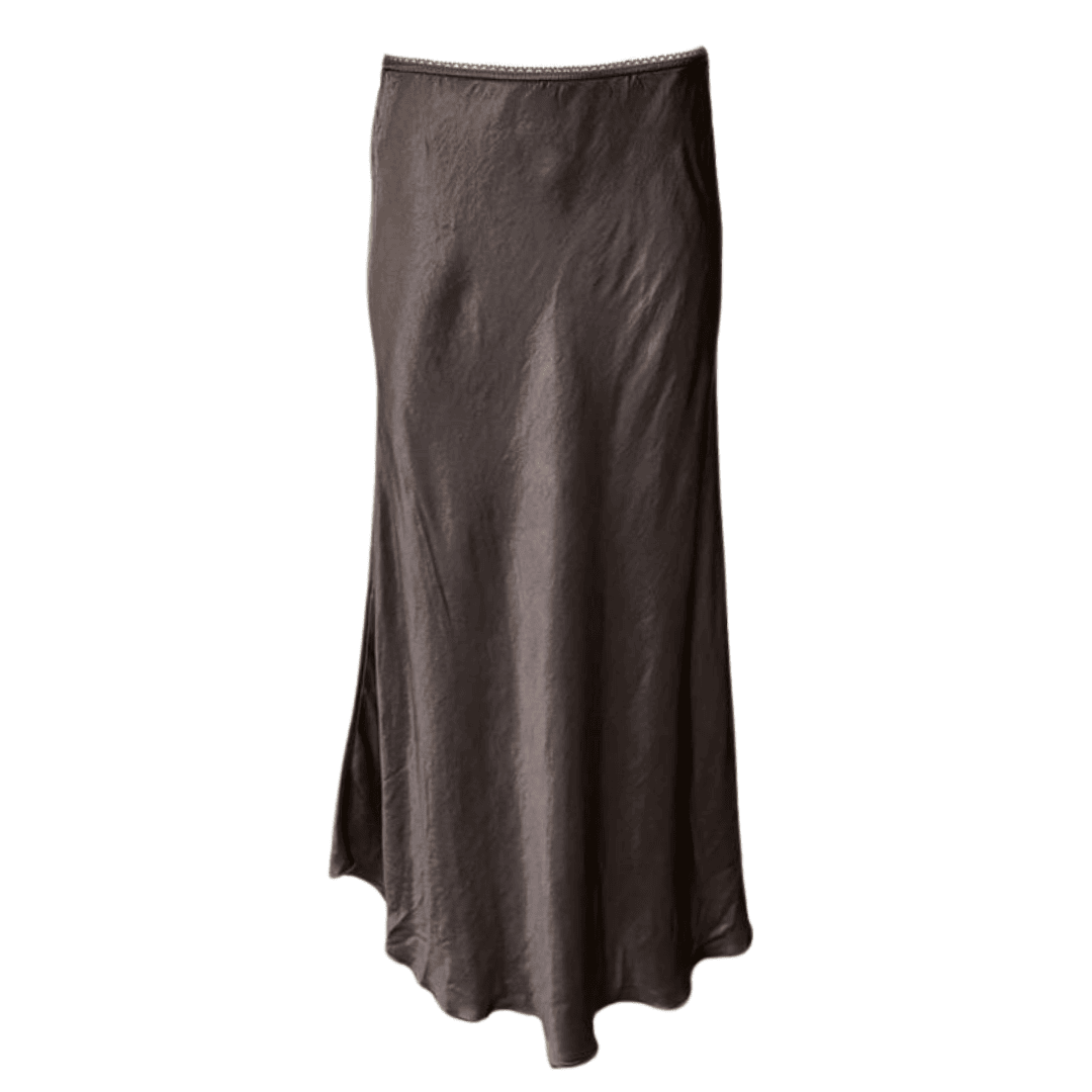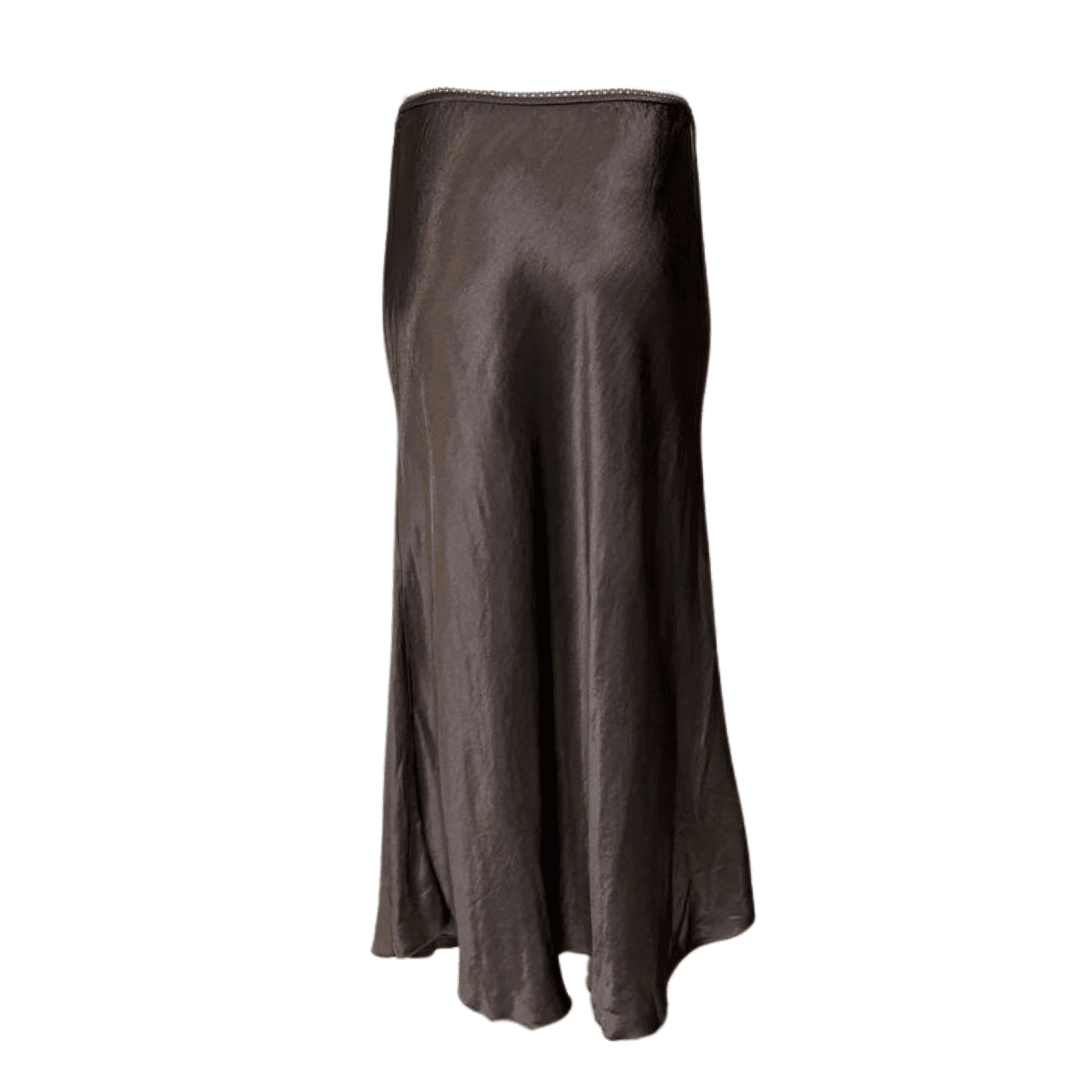Flowy and flattering, this long brown satin skirt features an elasticated waist for all-day comfort and graceful movement at the hem. Easy to wear and versatile, it can be dressed up for special occasions or dressed down for casual outings—your go-to skirt for effortless style anytime