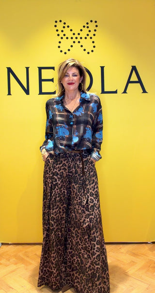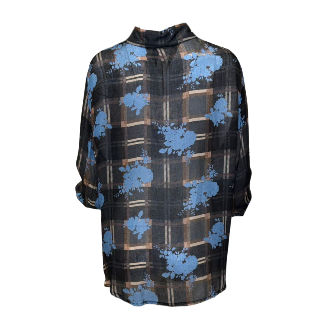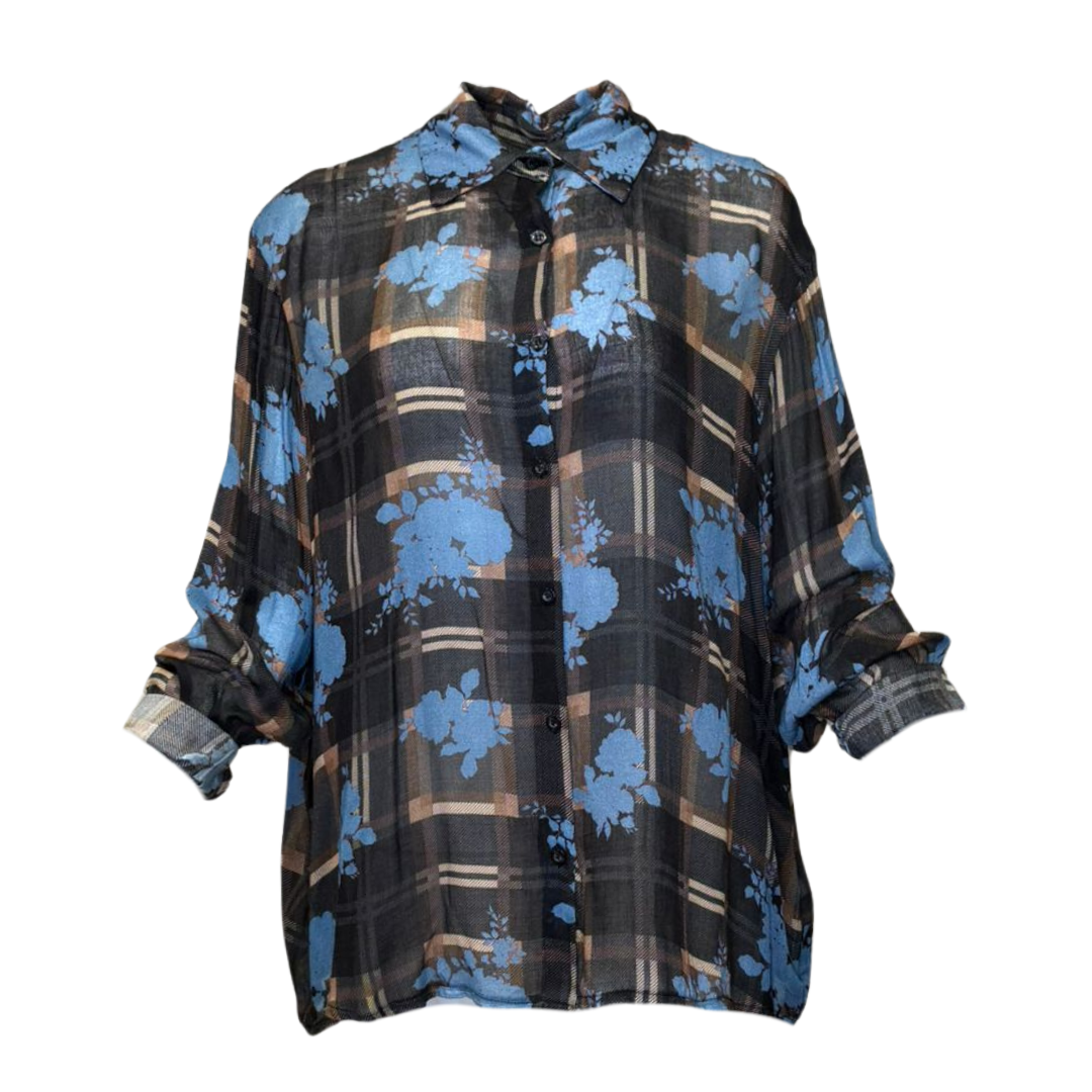 A super lightweight shirt that can be worn on its own or effortlessly layered. Featuring a gorgeous brown tartan base with striking blue floral accents, it blends quirky charm with cool, modern style. Perfect for day or night, this piece is incredibly versatile, ultra-trendy, and guaranteed to elevate any look.