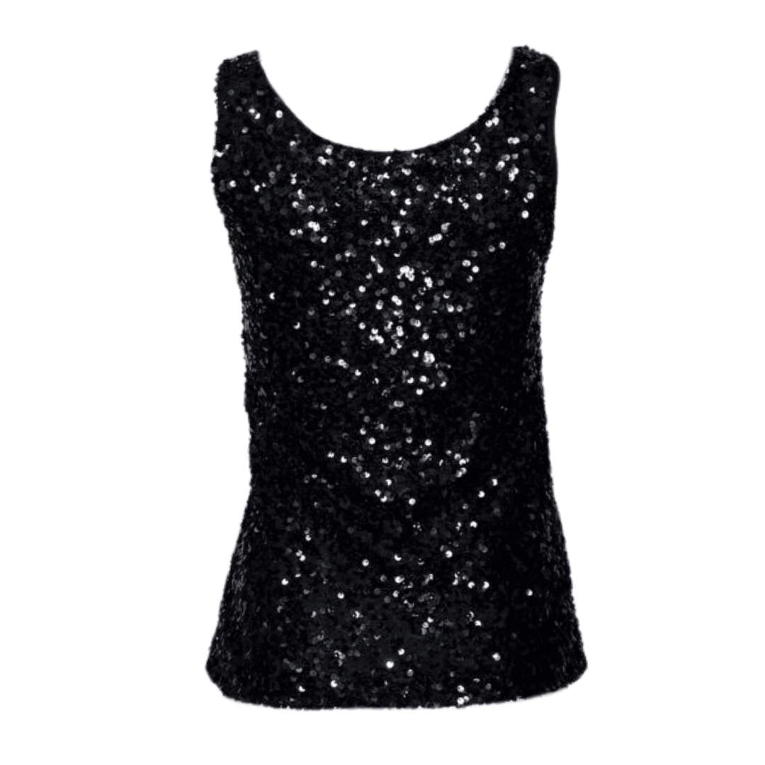 Add a fun touch of sparkle to your wardrobe with this gorgeous jet black vest-style sequin top. Lined for extra comfort, it’s the perfect way to shine subtly while keeping cozy. Get ready to light up every room with Jojo!