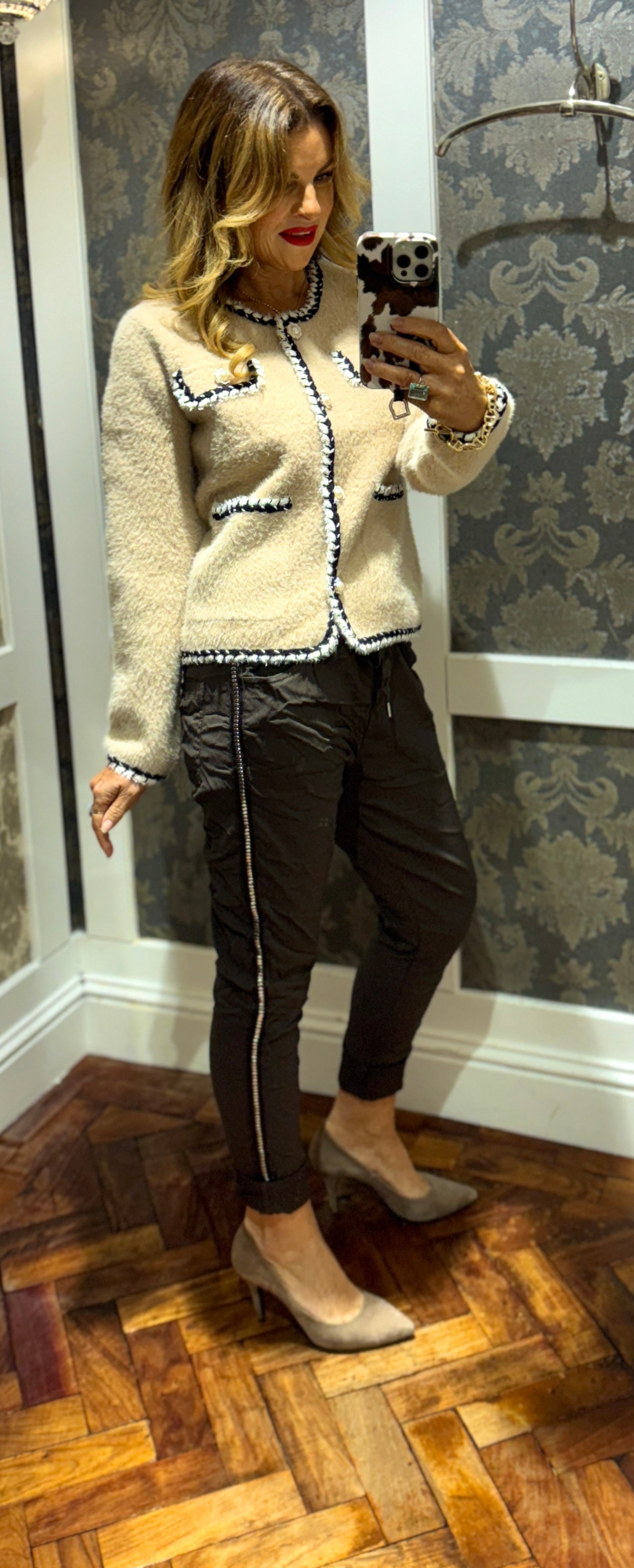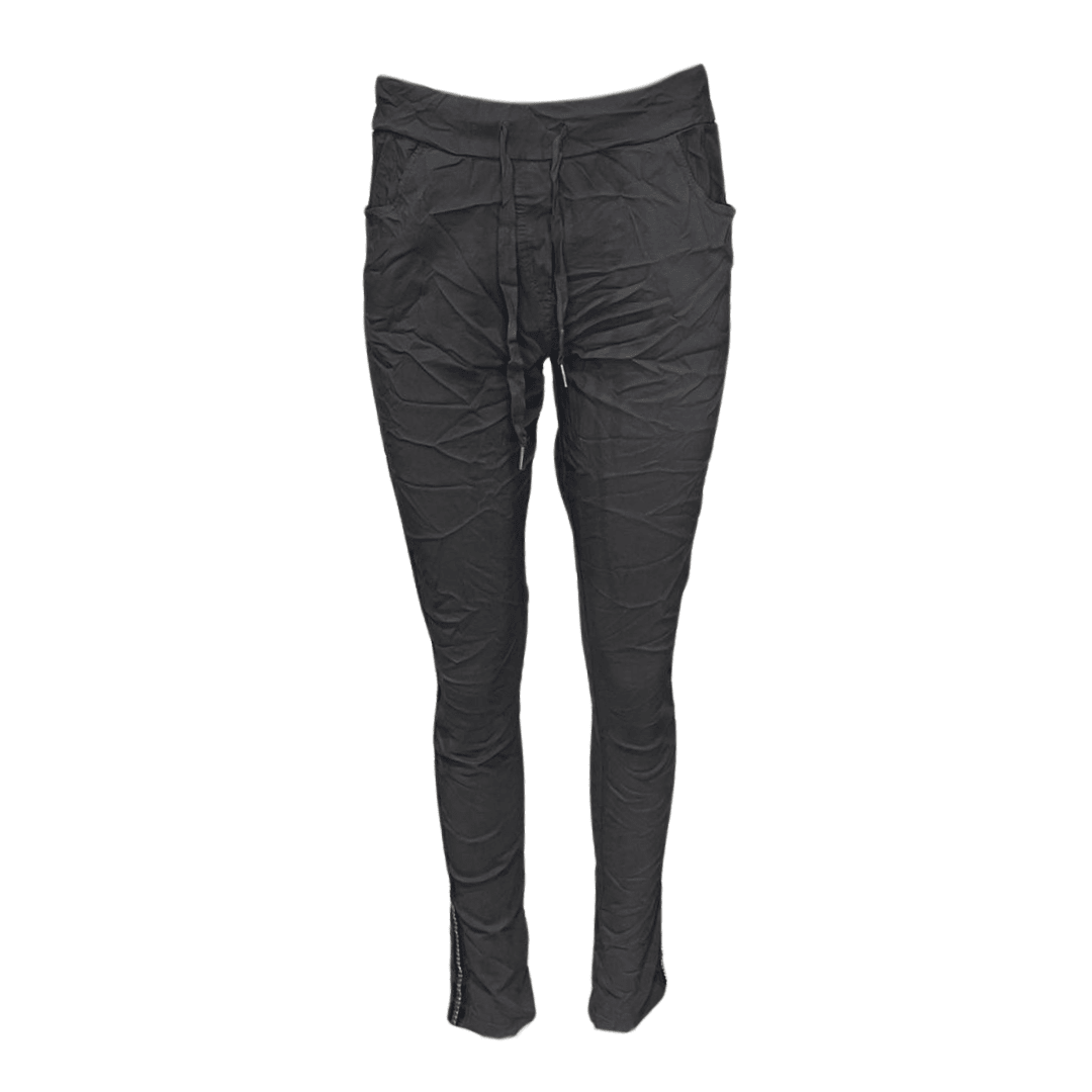 Chic and comfortable, these dressy trousers feature stylish side studding, a stretchy fit, and practical pockets—perfect for dressing up or traveling in effortless style.