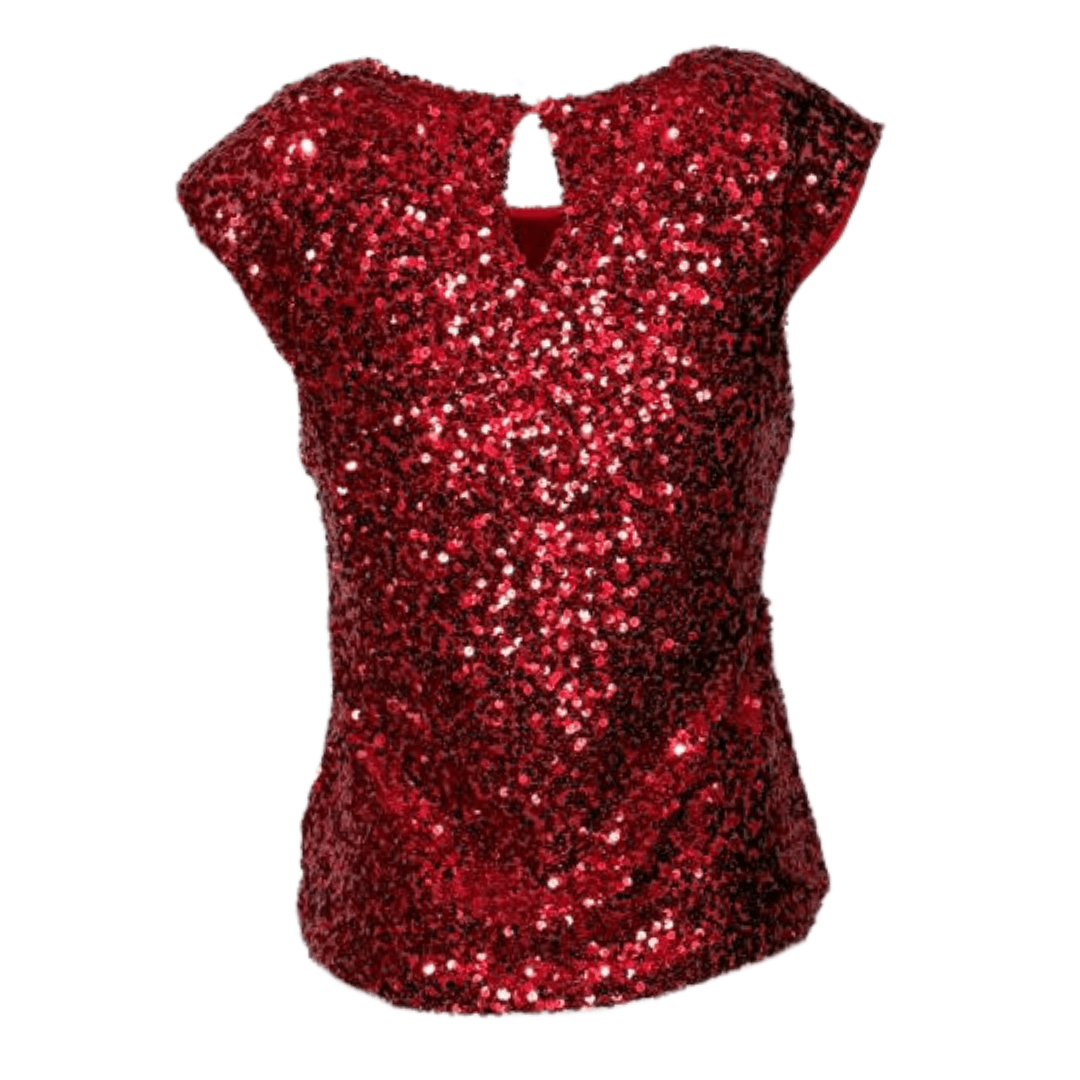 Bold and dazzling, this red sequin dress features short sleeves, structured shoulder padding, and full lining for comfort. A statement piece that brings instant drama and shine.