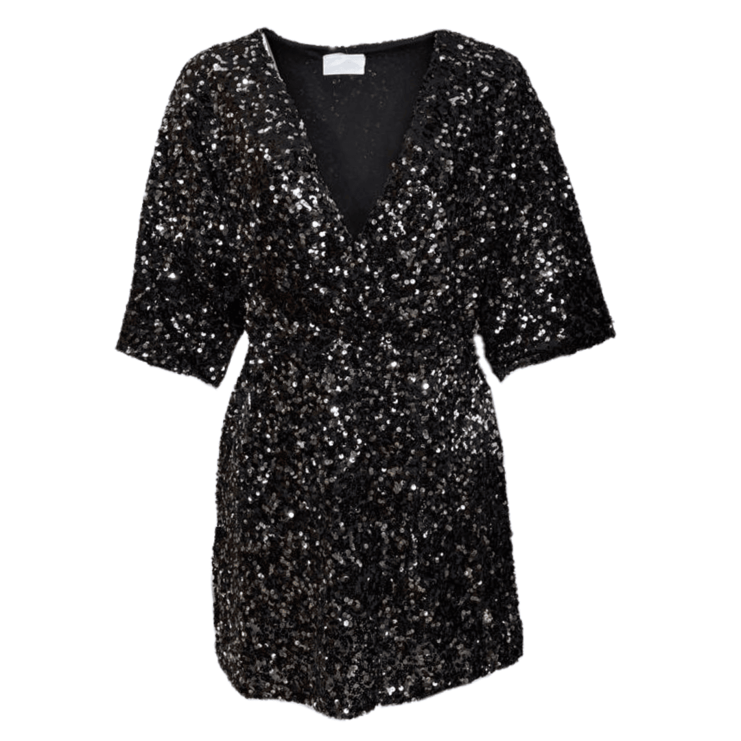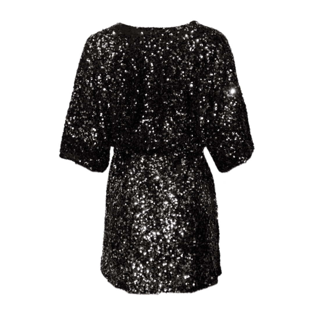 Turn heads in this jet black/Silver sequin  playsuit, featuring a deep V-neckline, short sleeves, and a fully lined finish for all-day comfort and confidence.