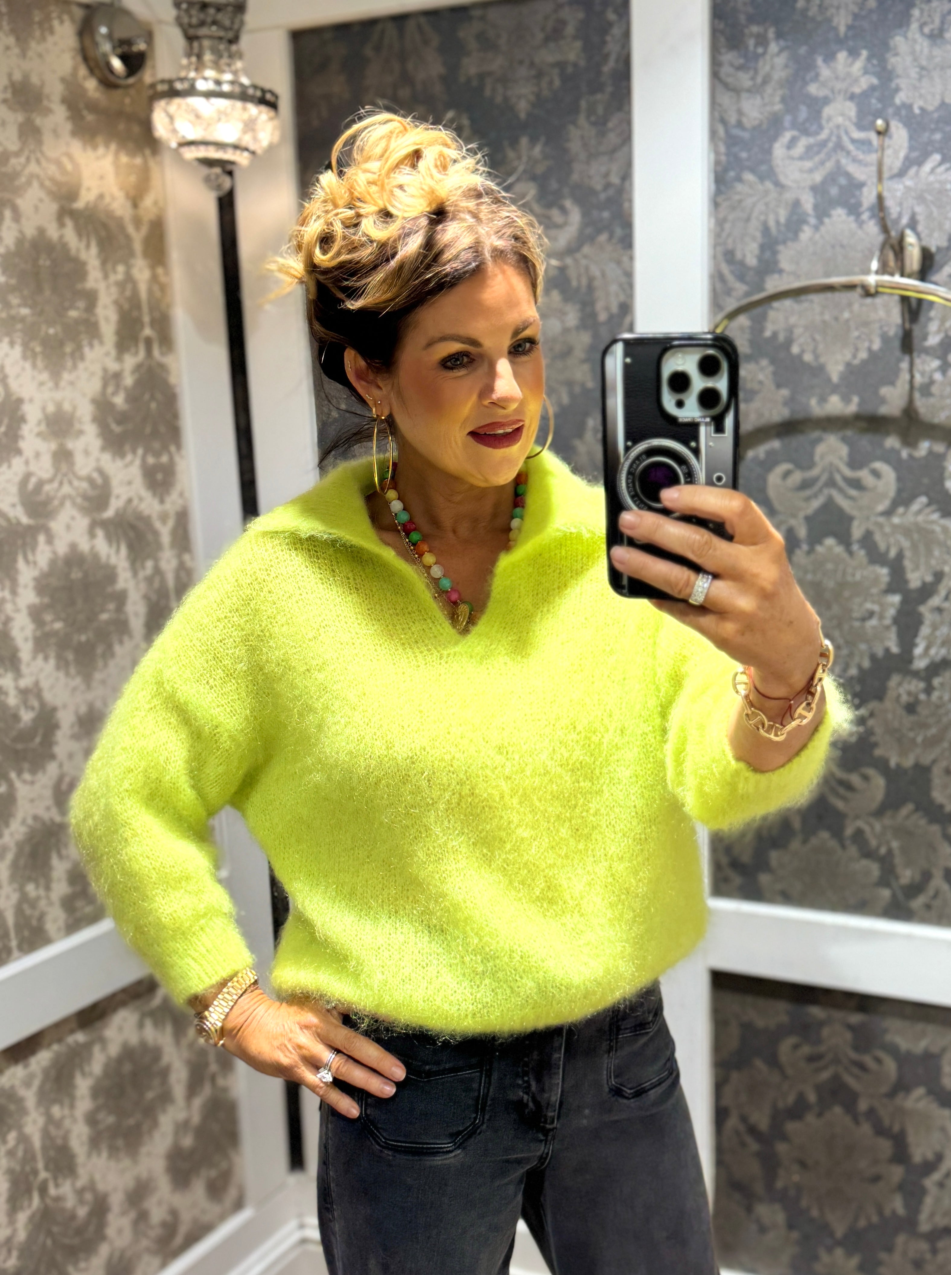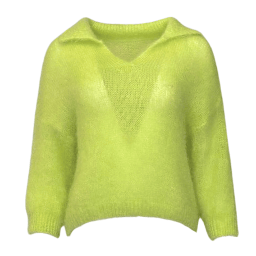 Soft mohair knit with a collar neckline—lightweight, cozy, and effortlessly stylish