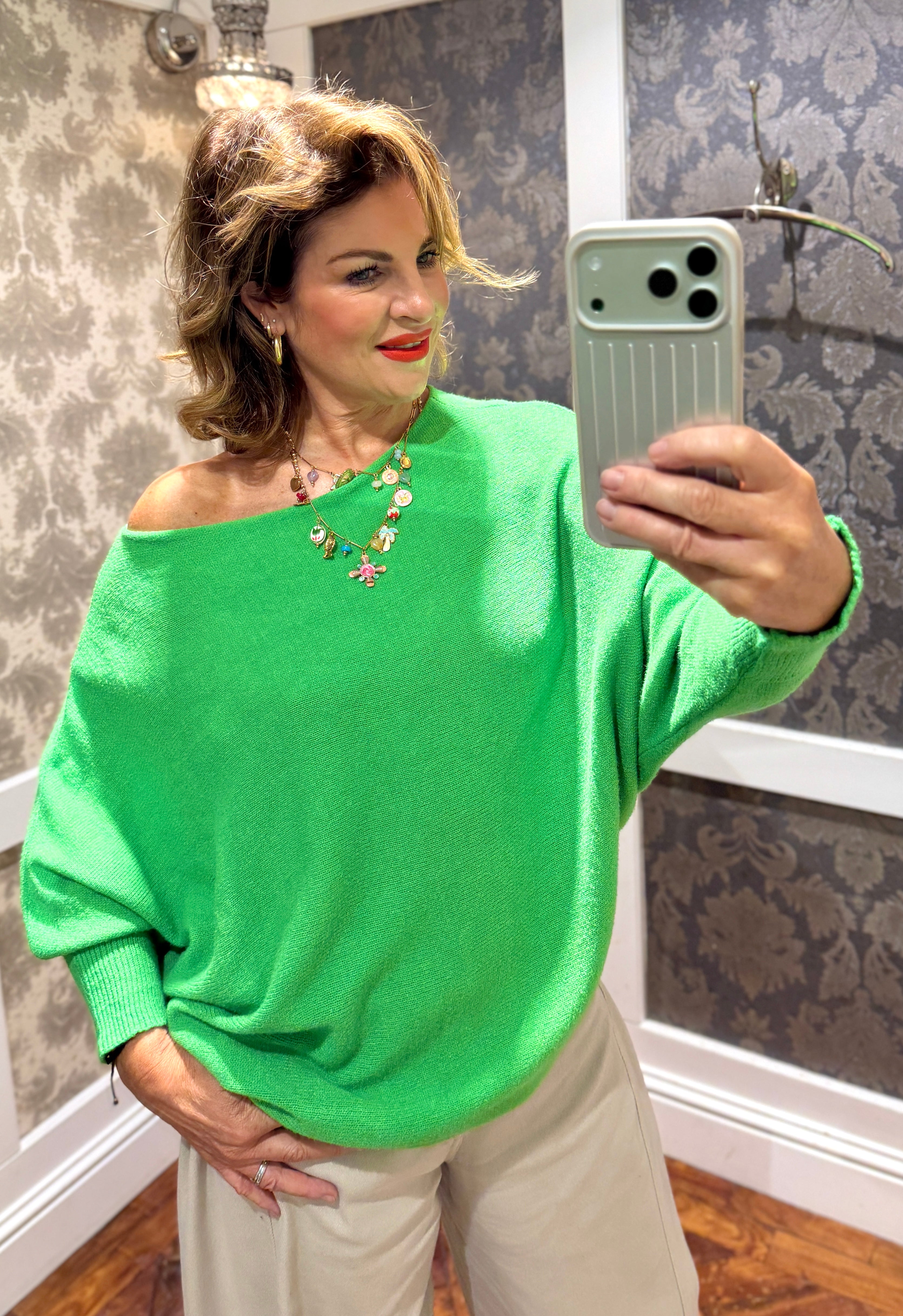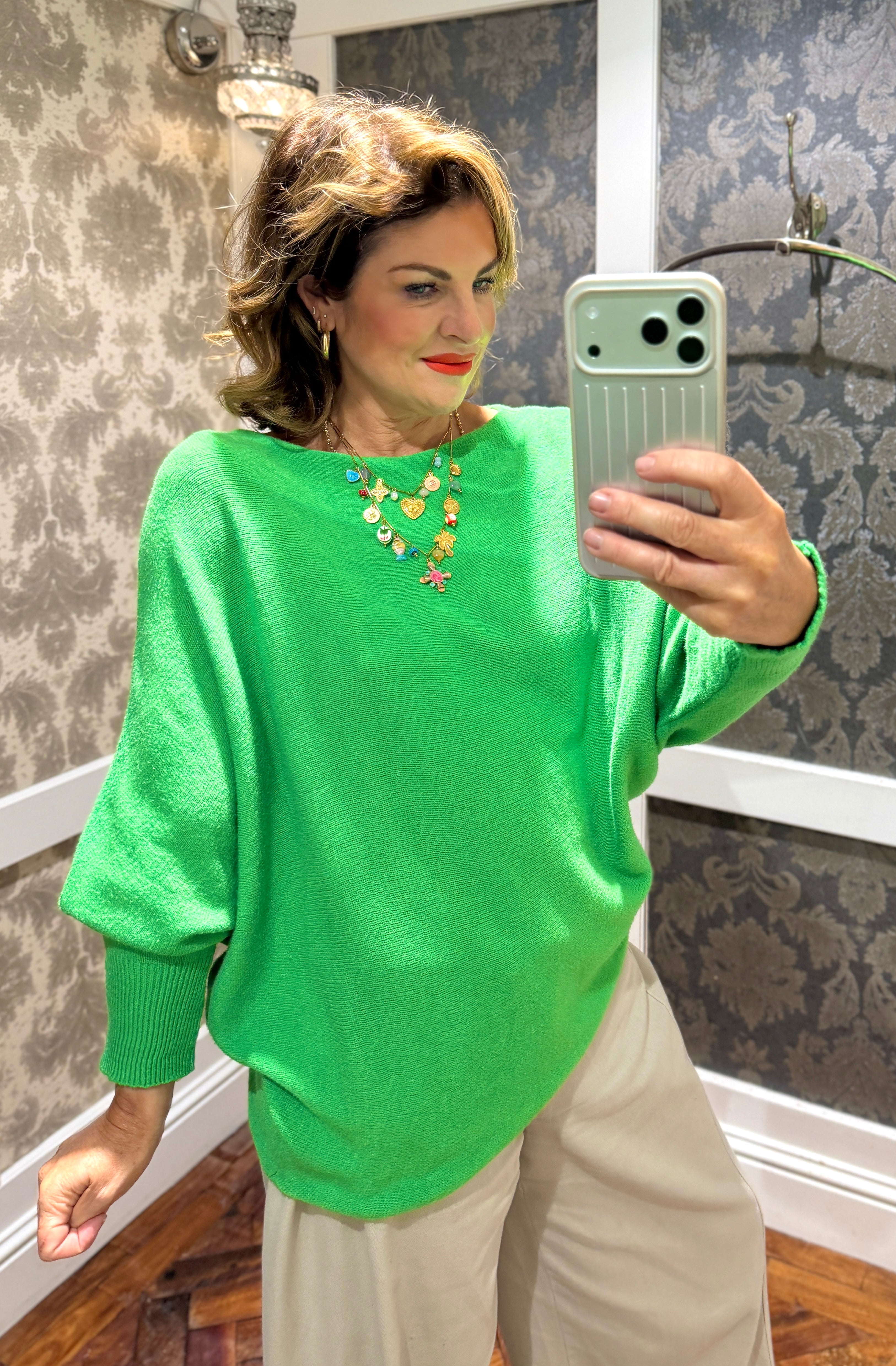 This effortlessly chic batwing jumper is the perfect blend of comfort and style. Crafted from a soft, lightweight knit, it features a flattering boat neckline that sits elegantly across the shoulders. The relaxed batwing sleeves create a beautiful drape while the gently shaped body offers a polished silhouette without feeling oversized. Finished with fitted cuffs for subtle structure, this jumper is easy to dress up or down. Ideal for everyday wear. A versatile wardrobe essential that feels cosy yet refined, designed to move seamlessly from day to evening.