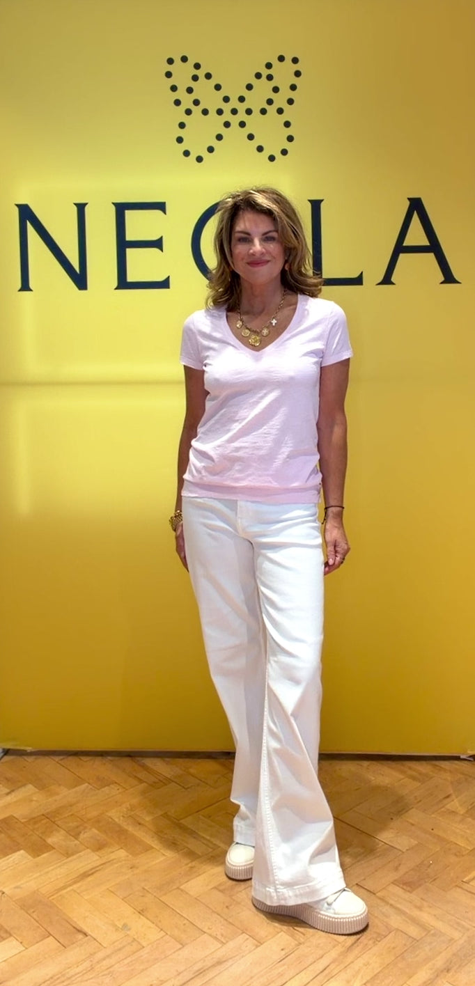 A classic organic cotton V-neck T-shirt crafted from soft, breathable cotton with a smooth, garment-dyed finish. Designed with a relaxed yet flattering fit, short sleeves, and subtle side slits for ease and movement. Lightweight, versatile, and easy to style—perfect worn alone or layered year-round.