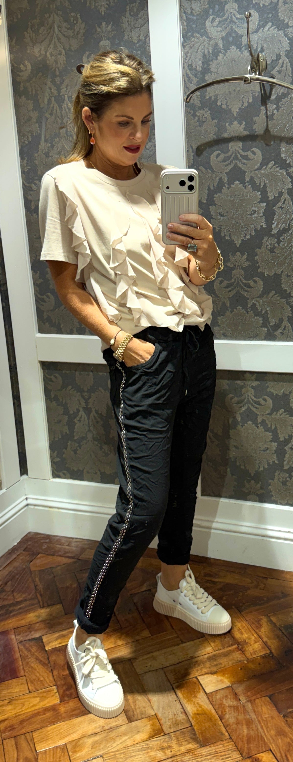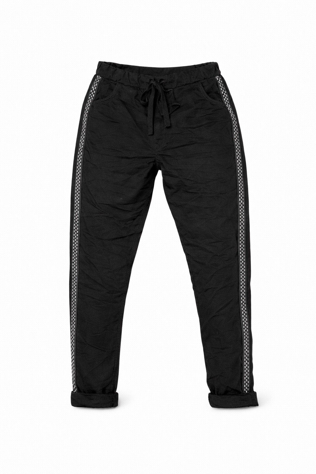 The Magic Pants in Classic Black are the perfect mix of comfort and effortless style. Featuring a soft elasticated waistband with adjustable drawstring, flattering relaxed fit, and contrast side stripe detail, they’re designed to take you from casual days to dressed-up evenings with ease. The lightweight fabric gives that signature “Magic” stretch and comfort you love.