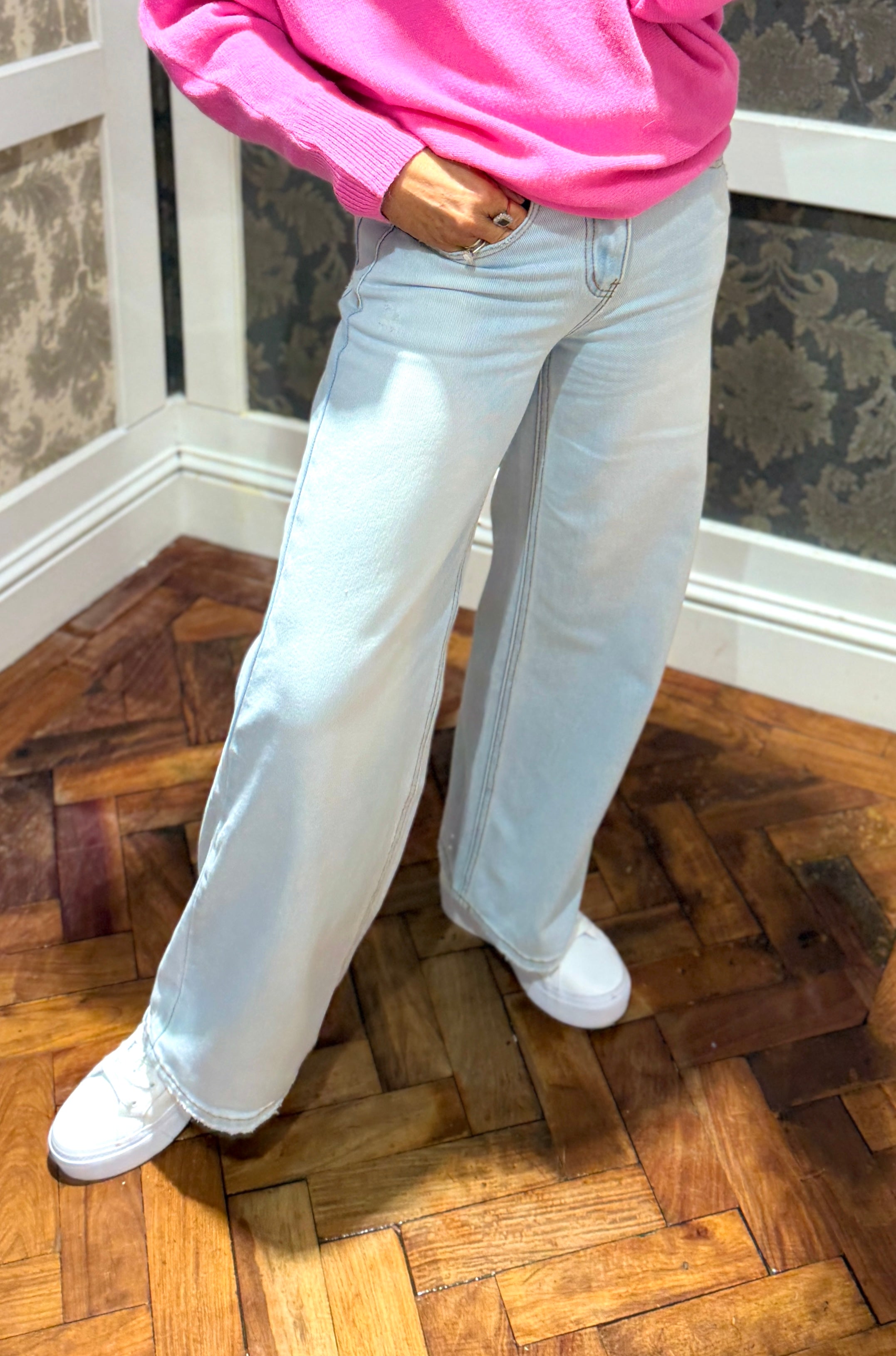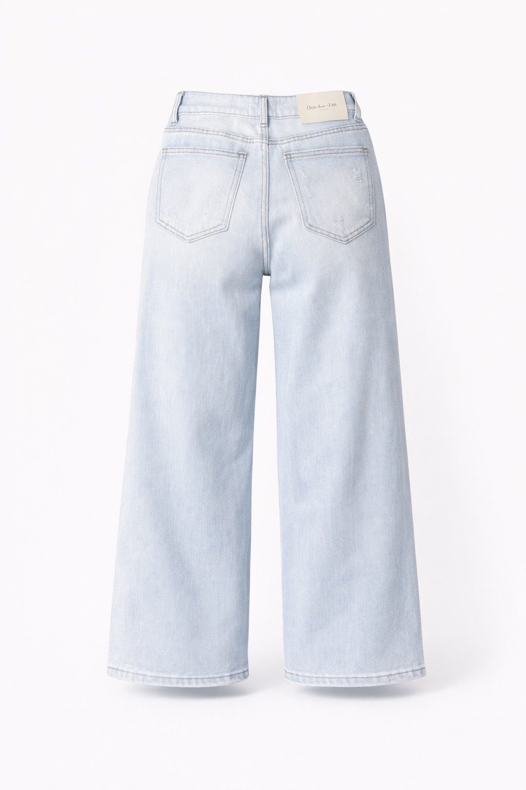 A modern wide-leg jean designed for effortless everyday wear. Cut from soft, structured denim, this style sits comfortably at the waist and falls into a relaxed, wide silhouette with a clean ankle-length finish. Subtle fading and delicate distressed details add a worn-in feel while keeping the look polished. Finished with classic five-pocket styling and clean seam lines, these jeans are easy to dress up or down for any season. Perfect with knitwear, shirts, or simple tees for an easy, laid-back look