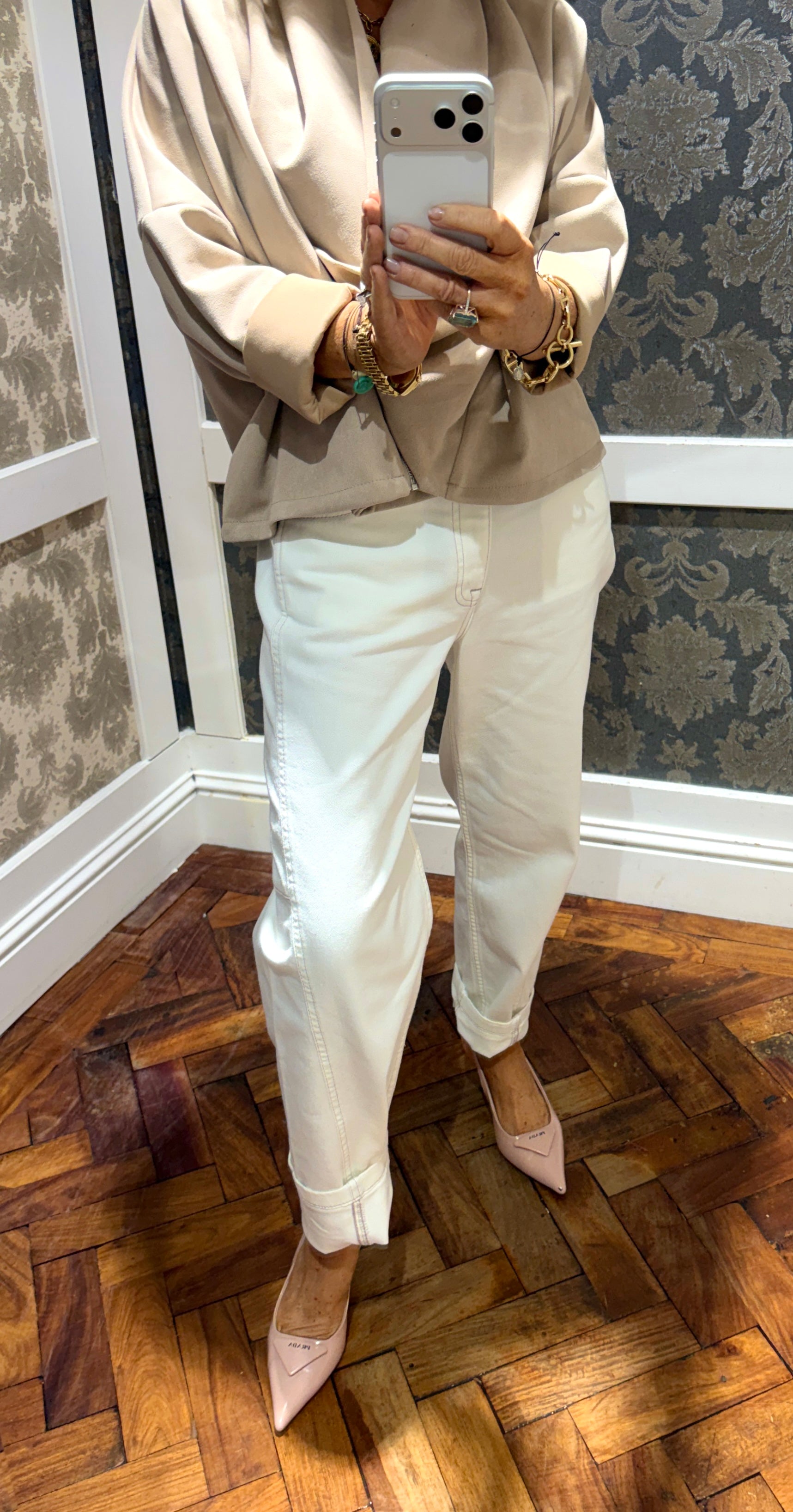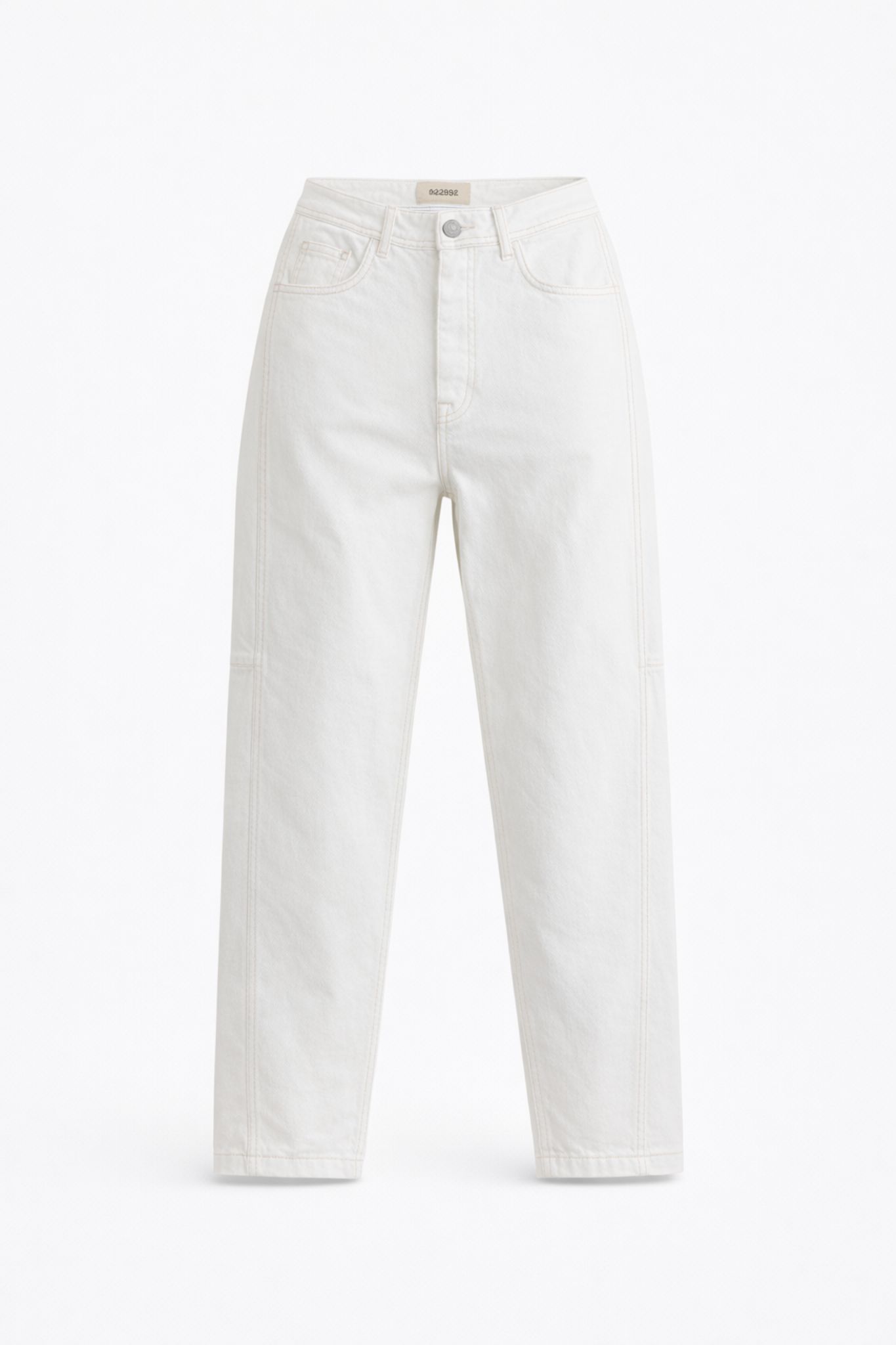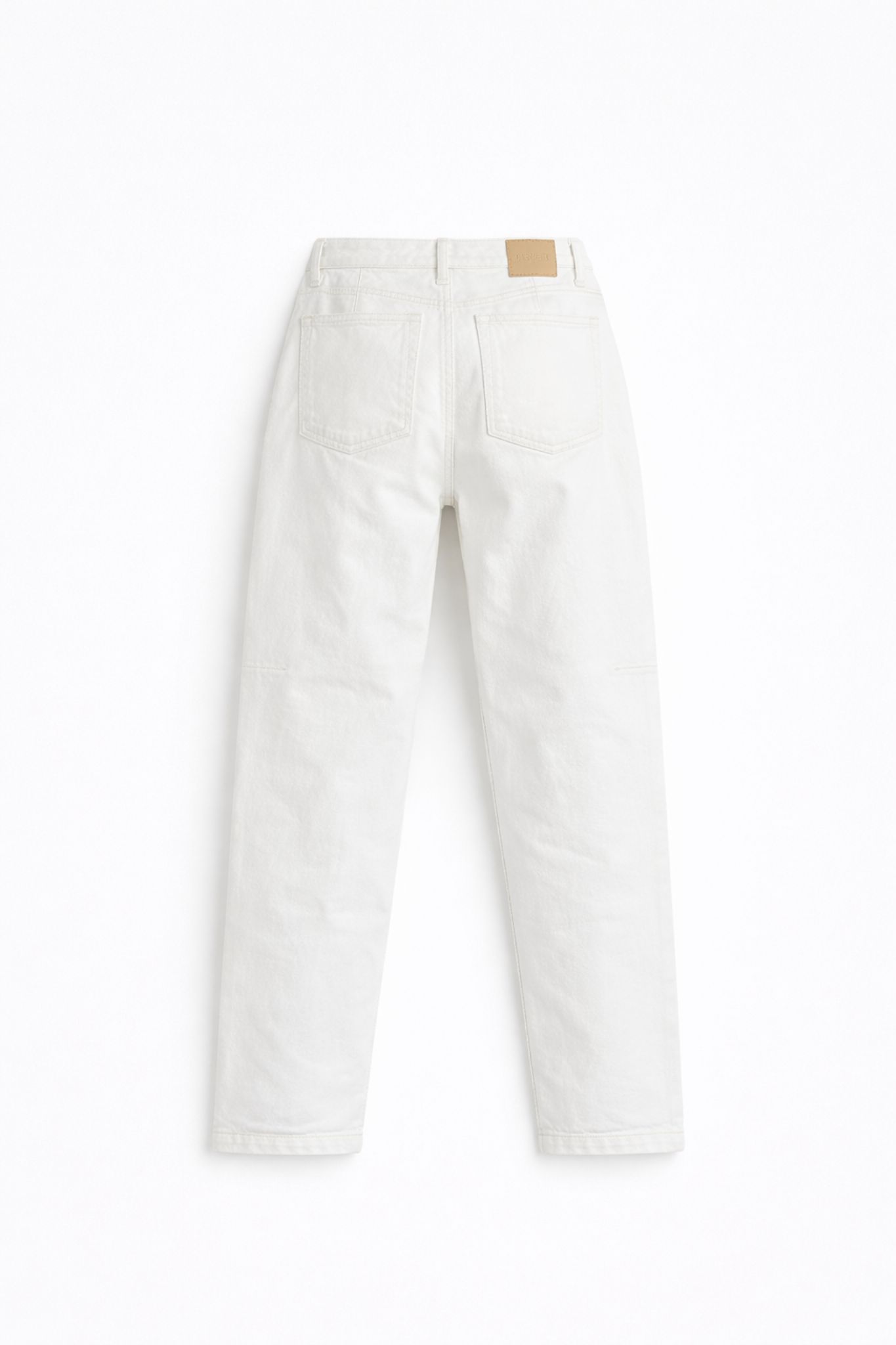 Clean, modern and endlessly wearable. These white relaxed-leg jeans feature a structured mid-rise fit with a relaxed leg for an effortless silhouette. Crafted from sturdy denim with a smooth, matte finish, they’re finished with classic five-pocket styling and subtle seam detailing. Easy to dress up or down, they’re a timeless staple designed for everyday wear.
