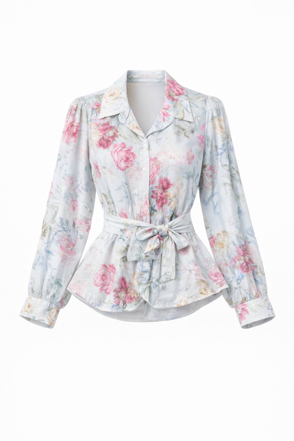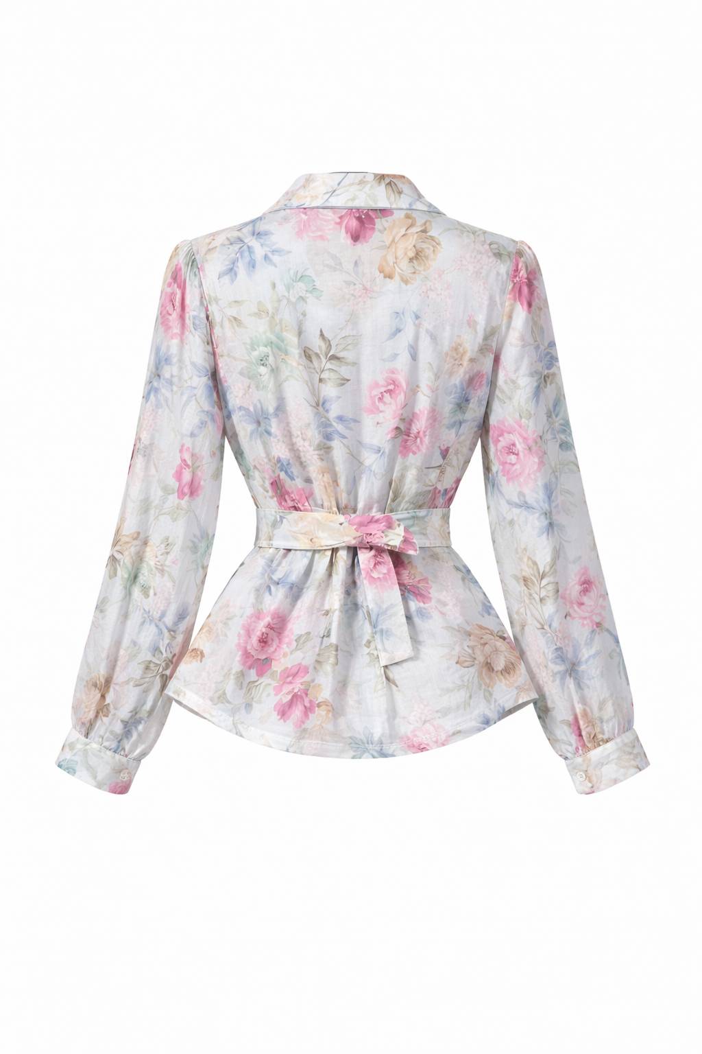Light, feminine, and effortlessly polished, this floral shirt is designed to flatter. Crafted from a soft, semi-sheer fabric with a delicate drape, it features a built-in internal structure that holds the flowy shape in place, giving the silhouette a consistently elegant finish. Designed with a classic collar, button-through front, and long sleeves with gentle volume, it’s complete with an adjustable tie waist to cinch and define the figure. Easy to style with denim or tailored trousers, this piece delivers softness with structure for all-day wear.