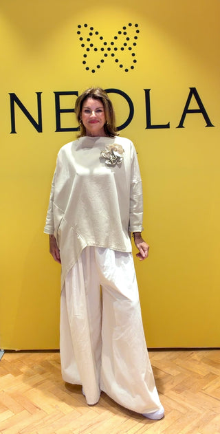 Sienna- Asymmetrical Top-Cream- Detachable flower