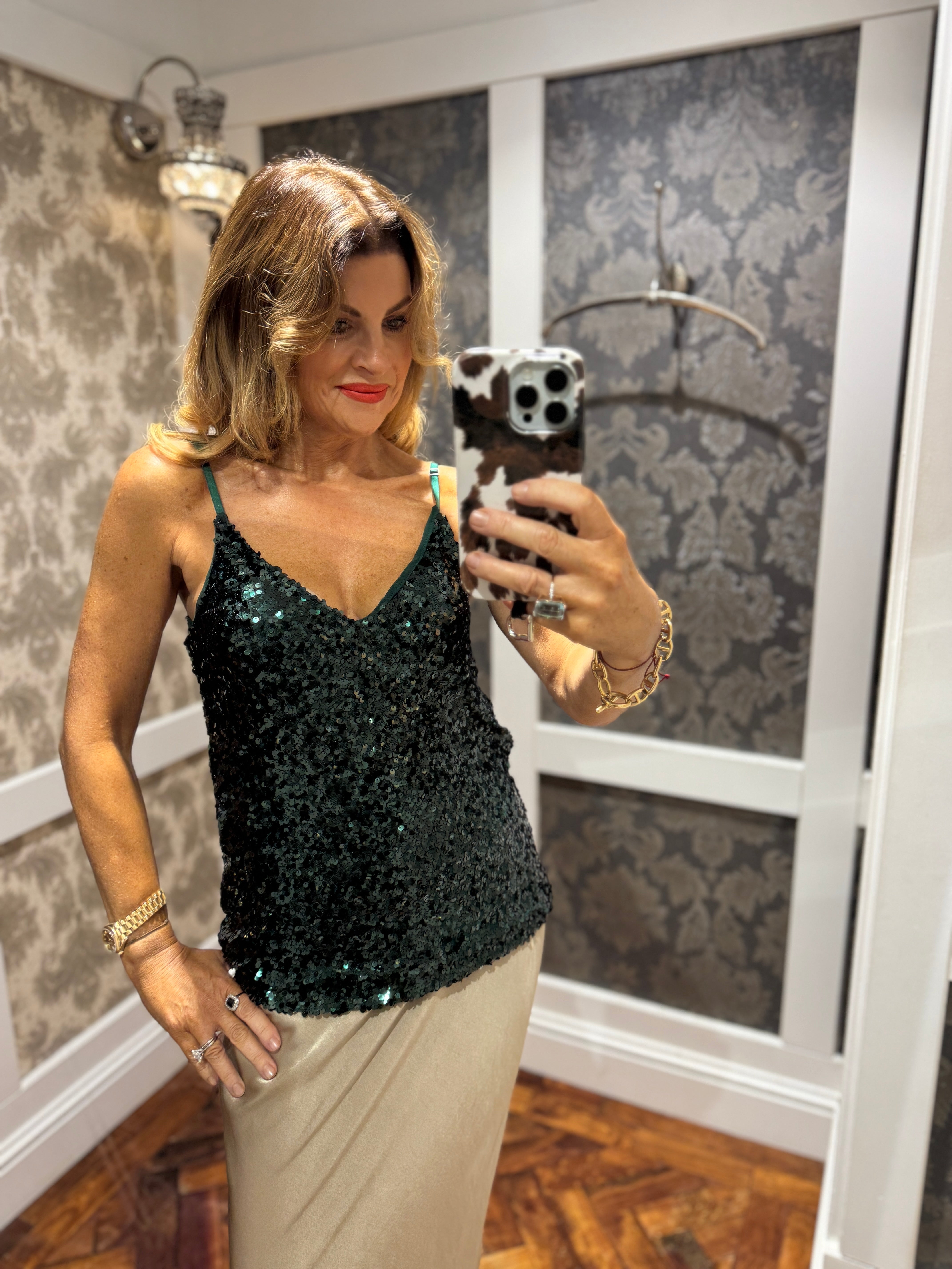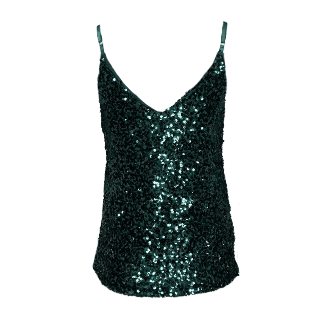 Cleo- Sequin Tank Top- Forest Green