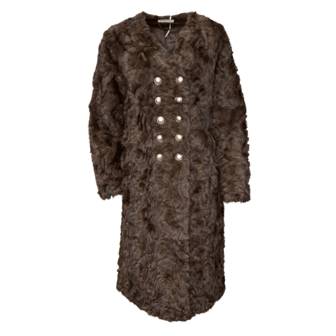 Alanis Button Fur Coat - Brown